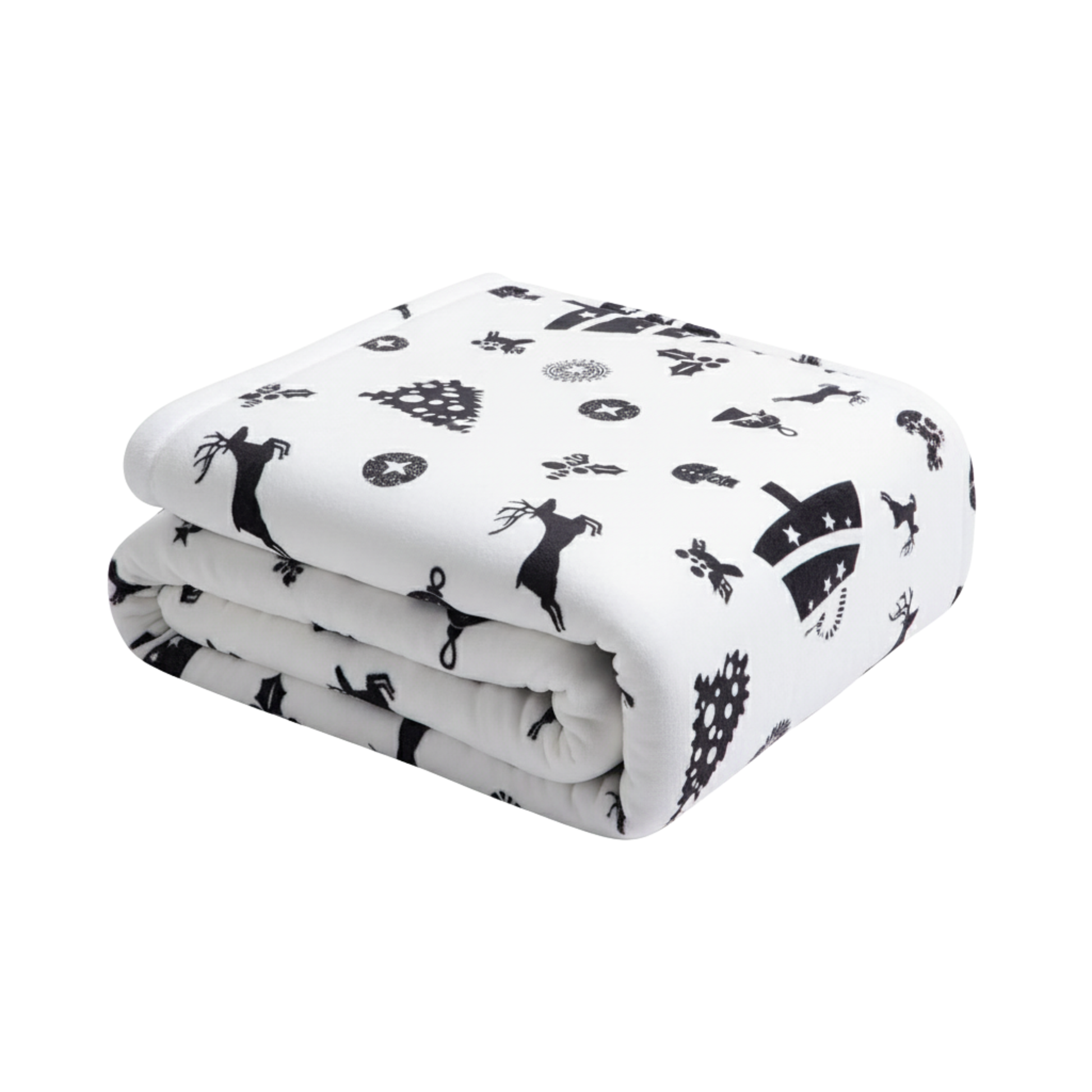 This blanket features a dual-sided construction with smooth microfiber fleece on one side and plush Sherpa on the reverse. The fleece provides 250 GSM density for soft coverage, while the Sherpa reverse offers 300 GSM pile for a thicker texture. The combination of these materials maintains shape and surface quality over repeated use.